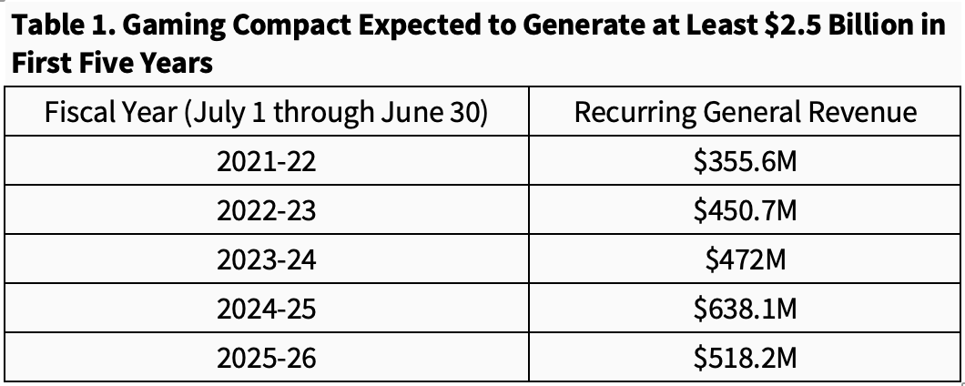 Overview of Gaming Compact Revenue Projections Over Next Five Years